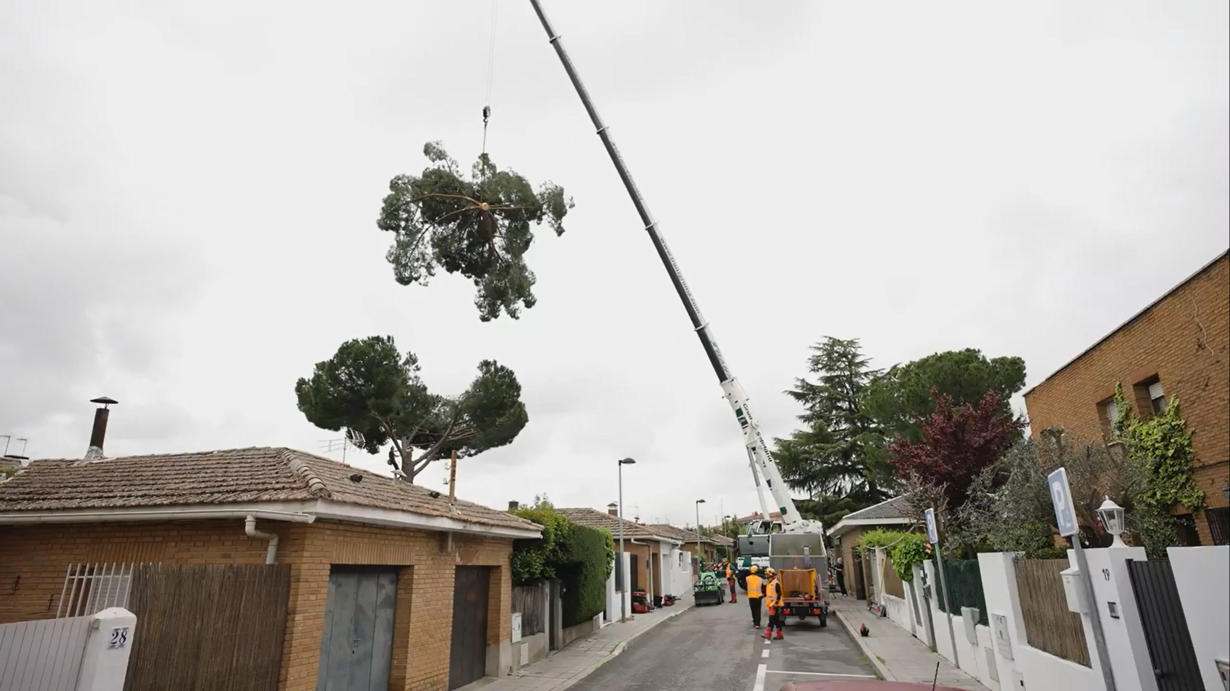 Madridissa sijaitsevan asuinkiinteistön omistajat kohtasivat haastavan tilanteen: suuri mänty kasvoi suoraan heidän talonsa läpi. Puu oli riski rakennukselle ja naapureiden turvallisuudelle, ja sen kaataminen edellytti asiantuntevaa osaamista.